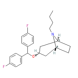 | SMILES | CCCCN1[C@H]2CC[C@@H]1C[C@H](OC(c1ccc(F)cc1)c1ccc(F)cc1)C2 |