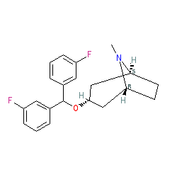 | SMILES | CN1[C@H]2CC[C@@H]1C[C@H](OC(c1cccc(F)c1)c1cccc(F)c1)C2 |