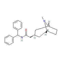 | SMILES | CN1[C@H]2CC[C@@H]1C[C@H](CC(=O)NC(c1ccccc1)c1ccccc1)C2 |