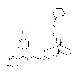 | SMILES | Fc1ccc(C(OCC[C@@H]2C[C@@H]3CC[C@H](C2)N3CCCc2ccccc2)c2ccc(F)cc2)cc1 |