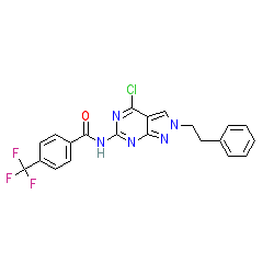 | SMILES | O=C(Nc1nc(Cl)c2cn(CCc3ccccc3)nc2n1)c1ccc(C(F)(F)F)cc1 |