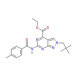 | SMILES | CCOC(=O)c1nc(NC(=O)c2ccc(C)cc2)nc2nn(CC(C)(C)C)cc12 |