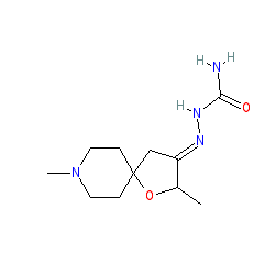 | SMILES | CC1OC2(CCN(C)CC2)C/C1=N\NC(N)=O |