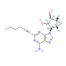 | SMILES | CCCCC#Cc1nc(NC)c2ncn([C@H]3[C@H](O)[C@H](O)[C@@H]4C[C@@H]43)c2n1 |
