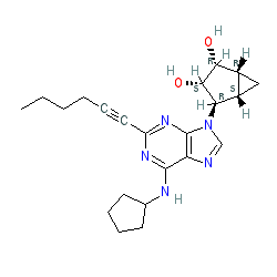 | SMILES | CCCCC#Cc1nc(NC2CCCC2)c2ncn([C@H]3[C@H](O)[C@H](O)[C@@H]4C[C@@H]43)c2n1 |