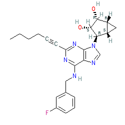 | SMILES | CCCCC#Cc1nc(NCc2cccc(F)c2)c2ncn([C@H]3[C@H](O)[C@H](O)[C@@H]4C[C@@H]43)c2n1 |