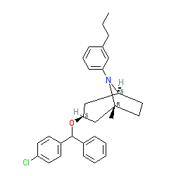 | SMILES | CCCc1cccc(N2[C@H]3CC[C@]2(C)C[C@@H](OC(c2ccccc2)c2ccc(Cl)cc2)C3)c1 |