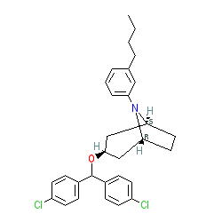 | SMILES | CCCCc1cccc(N2[C@H]3CC[C@@H]2C[C@@H](OC(c2ccc(Cl)cc2)c2ccc(Cl)cc2)C3)c1 |