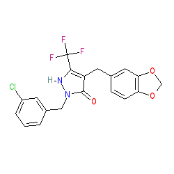 SMILES | O=c1c(Cc2ccc3c(c2)OCO3)c(C(F)(F)F)[nH]n1Cc1cccc(Cl)c1 |
