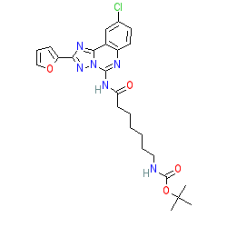 | SMILES | CC(C)(C)OC(=O)NCCCCCCC(=O)Nc1nc2ccc(Cl)cc2c2nc(-c3ccco3)nn12 |