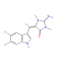 | SMILES | CN1C(=N)N(C)/C(=C/c2c[nH]c3cc(Cl)c(Cl)cc23)C1=O |