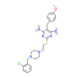 | SMILES | COc1ccc(Cc2c(N)nc(SCCN3CCN(Cc4ccccc4Cl)CC3)nc2N)cc1 |