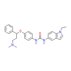 | SMILES | CCn1ccc2cc(NC(=O)Nc3ccc(OC(CCN(C)C)c4ccccc4)cc3)ccc21 |