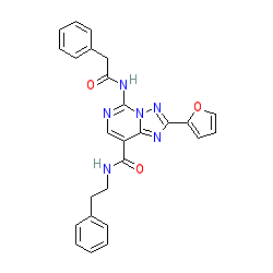 | SMILES | O=C(Cc1ccccc1)Nc1ncc(C(=O)NCCc2ccccc2)c2nc(-c3ccco3)nn12 |