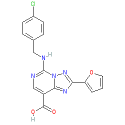 | SMILES | O=C(O)c1cnc(NCc2ccc(Cl)cc2)n2nc(-c3ccco3)nc12 |