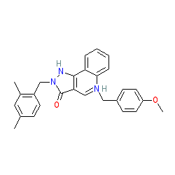 | SMILES | COc1ccc(Cn2cc3c(=O)n(Cc4ccc(C)cc4C)nc-3c3ccccc32)cc1 |