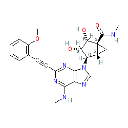 | SMILES | CNC(=O)[C@@]12C[C@@H]1[C@@H](n1cnc3c(NC)nc(C#Cc4ccccc4OC)nc31)[C@H](O)[C@@H]2O |