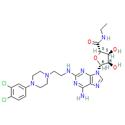 | SMILES | CCNC(=O)[C@H]1O[C@@H](n2cnc3c(N)nc(NCCN4CCN(c5ccc(Cl)c(Cl)c5)CC4)nc32)[C@H](O)[C@@H]1O |
