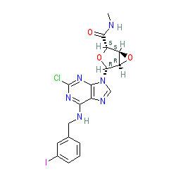 | SMILES | CNC(=O)[C@H]1O[C@@H](n2cnc3c(NCc4cccc(I)c4)nc(Cl)nc32)[C@@H]2O[C@H]12 |