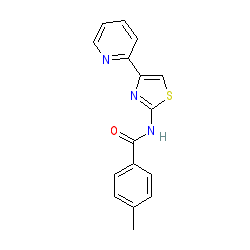 | SMILES | Cc1ccc(C(=O)Nc2nc(-c3ccccn3)cs2)cc1 |