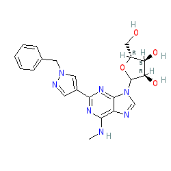 | SMILES | CNc1nc(-c2cnn(Cc3ccccc3)c2)nc2c1ncn2C1O[C@H](CO)[C@@H](O)[C@H]1O |