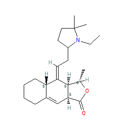 | SMILES | CCN1C(C/C=C2/[C@H]3CCCCC3=C[C@@H]3C(=O)O[C@@H](C)[C@H]23)CCC1(C)C |