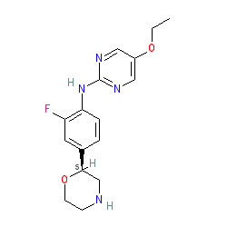 | SMILES | CCOc1cnc(Nc2ccc([C@H]3CNCCO3)cc2F)nc1 |
