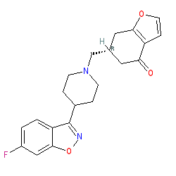 | SMILES | O=C1C[C@H](CN2CCC(c3noc4cc(F)ccc34)CC2)Cc2occc21 |