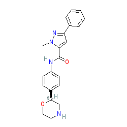 | SMILES | Cn1nc(-c2ccccc2)cc1C(=O)Nc1ccc([C@H]2CNCCO2)cc1 |