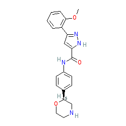 | SMILES | COc1ccccc1-c1cc(C(=O)Nc2ccc([C@H]3CNCCO3)cc2)[nH]n1 |