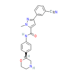 | SMILES | Cn1nc(-c2cccc(C#N)c2)cc1C(=O)Nc1ccc([C@H]2CNCCO2)cc1 |