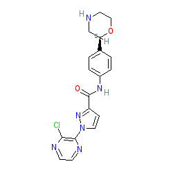 | SMILES | O=C(Nc1ccc([C@H]2CNCCO2)cc1)c1ccn(-c2nccnc2Cl)n1 |