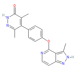 | SMILES | Cc1n[nH]c(=O)c(C)c1-c1ccc(Oc2nccc3n[nH]c(C)c23)cc1 |