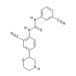 | SMILES | N#Cc1cccc(NC(=O)Nc2ccc(C3CNCCO3)cc2C#N)c1 |