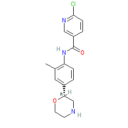 | SMILES | Cc1cc([C@@H]2CNCCO2)ccc1NC(=O)c1ccc(Cl)nc1 |