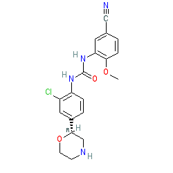 | SMILES | COc1ccc(C#N)cc1NC(=O)Nc1ccc([C@@H]2CNCCO2)cc1Cl |