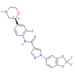 | SMILES | O=C(Nc1ccc([C@H]2CNCCO2)cc1F)c1cnn(-c2ccc3c(c2)OC(F)(F)O3)c1 |