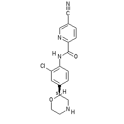 | SMILES | N#Cc1ccc(C(=O)Nc2ccc([C@H]3CNCCO3)cc2Cl)nc1 |