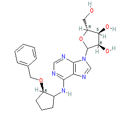 | SMILES | OC[C@H]1OC(n2cnc3c(NC4CCC[C@H]4OCc4ccccc4)ncnc32)[C@H](O)[C@@H]1O |