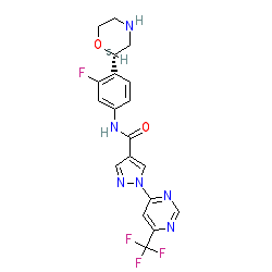 | SMILES | O=C(Nc1ccc([C@H]2CNCCO2)c(F)c1)c1cnn(-c2cc(C(F)(F)F)ncn2)c1 |