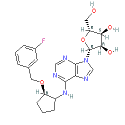 | SMILES | OC[C@H]1O[C@@H](n2cnc3c(NC4CCC[C@H]4OCc4cccc(F)c4)ncnc32)[C@H](O)[C@@H]1O |