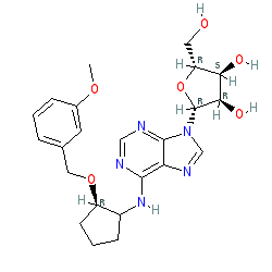 | SMILES | COc1cccc(CO[C@@H]2CCCC2Nc2ncnc3c2ncn3[C@@H]2O[C@H](CO)[C@@H](O)[C@H]2O)c1 |