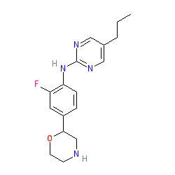 | SMILES | CCCc1cnc(Nc2ccc(C3CNCCO3)cc2F)nc1 |