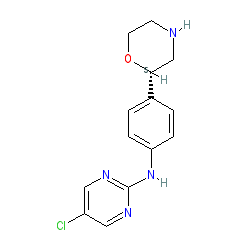 | SMILES | Clc1cnc(Nc2ccc([C@H]3CNCCO3)cc2)nc1 |