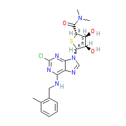 | SMILES | Cc1ccccc1CNc1nc(Cl)nc2c1ncn2[C@@H]1S[C@H](C(=O)N(C)C)[C@@H](O)[C@H]1O |