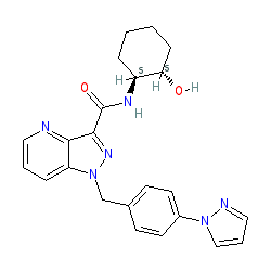 | SMILES | O=C(N[C@H]1CCCC[C@@H]1O)c1nn(Cc2ccc(-n3cccn3)cc2)c2cccnc12 |