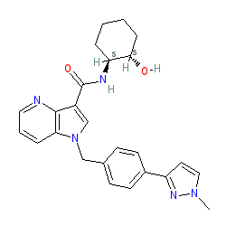 | SMILES | Cn1ccc(-c2ccc(Cn3cc(C(=O)N[C@H]4CCCC[C@@H]4O)c4ncccc43)cc2)n1 |