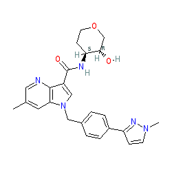 | SMILES | Cc1cnc2c(C(=O)N[C@H]3CCOC[C@@H]3O)cn(Cc3ccc(-c4ccn(C)n4)cc3)c2c1 |