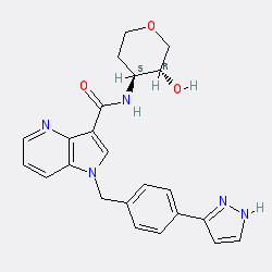 | SMILES | O=C(N[C@H]1CCOC[C@@H]1O)c1cn(Cc2ccc(-c3cc[nH]n3)cc2)c2cccnc12 |