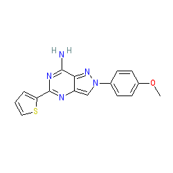 | SMILES | COc1ccc(-n2cc3nc(-c4cccs4)nc(N)c3n2)cc1 |